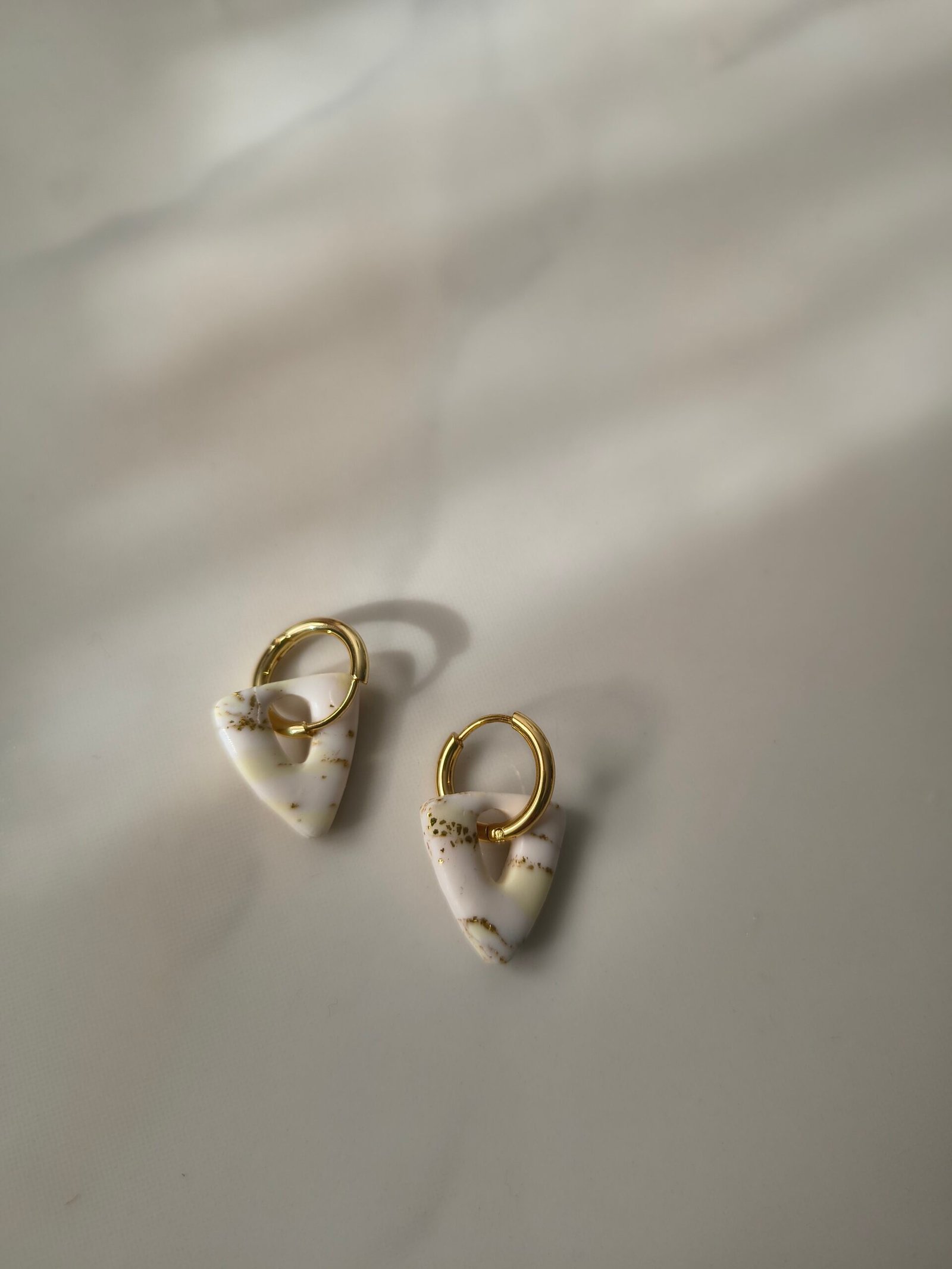Charm miniMarta con estampado de mármol y con aro de acero inoxidable acabado en dorado. Pendientes hechos de arcilla polimérica, a mano y con mucho amor