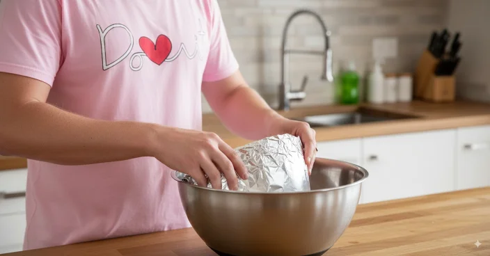 1. Forra el fondo del bol con aluminio (cara brillante hacia arriba).