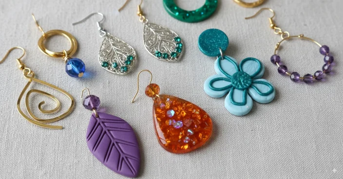 - Arcilla polimérica en formas suaves (oval, media luna) con ganchos hipoalergénicos.